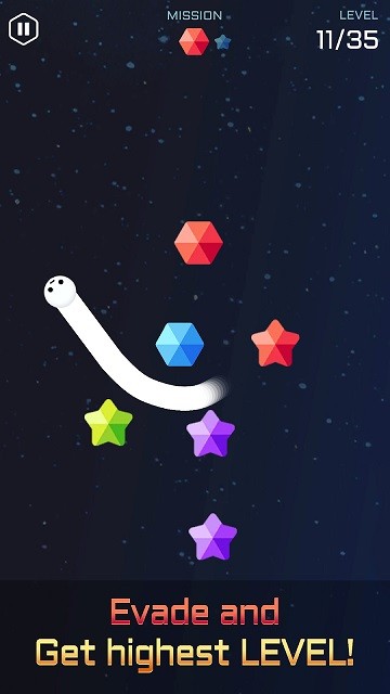 4.拖动手指去吃太空中的星星和宝石,让虫子变长