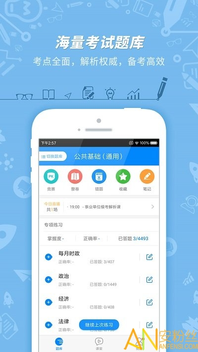 在线做题、逐题解析、每日竞赛、错题收藏、正确率分析,考生笔记等丰富功能。