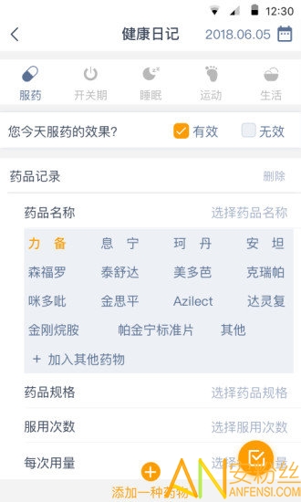 服药、开关期、睡眠、运动、生活五大板块,全面记录日常慢病管理细节.