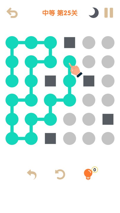 3.一划到底:仅用一条线填充所有点,即可完成谜题。