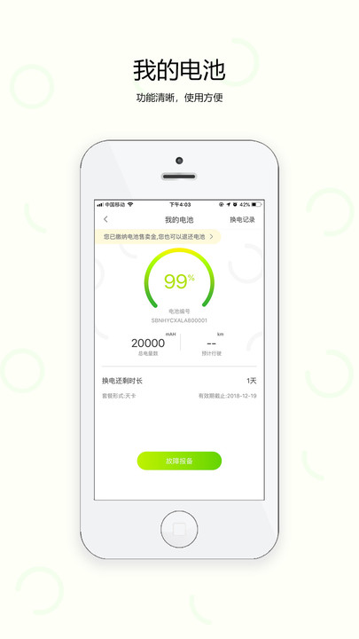 5、我的电池:查看电池剩余电量、可以续航里程和预计换电时间.