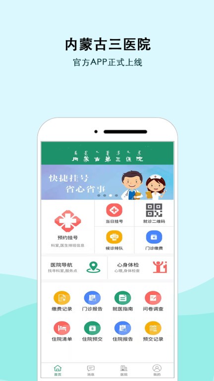 内蒙古三医院app是内蒙古智开信息技术有限公司为内蒙古自治区精神卫生中心(内蒙古自治区第三第三医院)定制开发的移动医疗手机客户端。为用户提供预约挂号、取报告单、心身体检、院内导航等服务,让患者可以直接通过手机预约挂号,免去排队困扰,享受更全面、更优质、更高效的医疗服务。