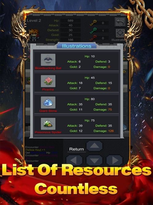 魔塔勇闯古堡游戏是一个有趣的冒险闯关游戏,游戏中的画面采用了经典的像素风格。玩家在游戏中操作着人物角色在地牢中进行冒险闯关。在闯关的过程中需要不断的去消灭地牢里的各种怪物,消灭强大的怪物会掉落珍稀装备。这里有大量的关卡设置,每一关都可以让你感受不同的战斗乐趣