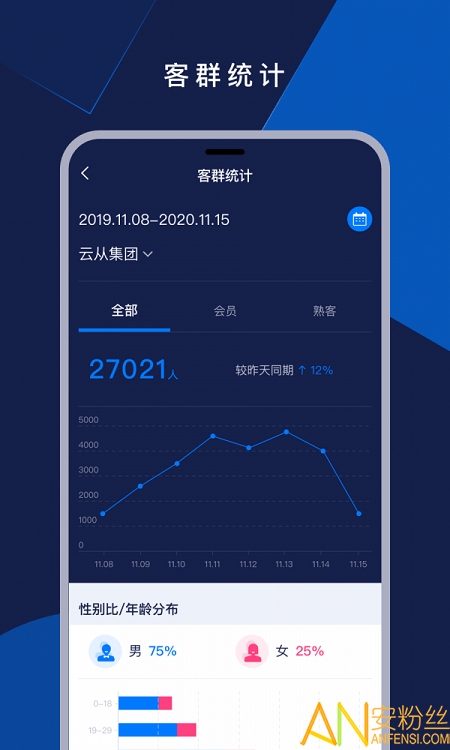 ·在客户管理板块查看客流量分析,客户群体的分析结果一清二楚。