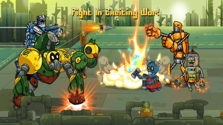 黑暗的机器人入侵地球。所有城市被摧毁。他们摧毁农作物,建筑物,桥梁和道路。他们是非常强大的敌人。人类不能打败他们。机器人必须与机器人战斗。而且必须检索地球。每个机器人都有自己的特点,玩家通过招募不同的机器人来进行战斗,打败你的对手。