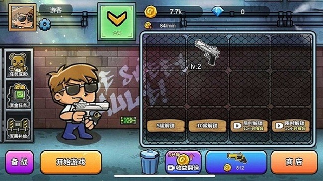 1、每个场景中都有隐藏的武器可以收集,充满热血的和激情的战斗,枪王之王的诞生。