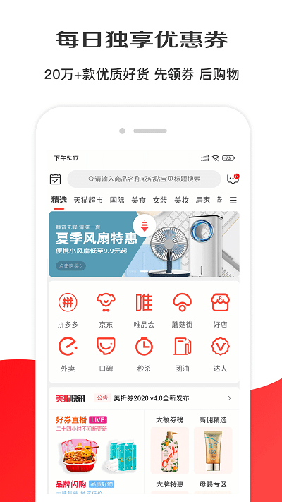淘选生活是一款专为优惠券打折而生的软件。美折券拥有全网最全的优惠券发放领取,在这里只要你想网购马上就可以将商品的标题复制到美折券软件中进行搜索查找优惠券,马上领取马上消费!再也不用担心剁手了,在下载这款应用吧!