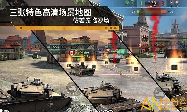 以三辆坦克起步,每辆坦克都有独特的优势及属性,供您执行您的小队战斗计划。根据您的应对策略,适时使用正确的坦克。此外,您可以提升坦克性能,并依靠完美战略来战胜对手。