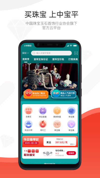 中宝平是由中宝协(北京)珠宝文化有限公司打造的珠宝全产业链综合服务平台.其依靠行业组织资源整合力、社会公信力,发挥珠宝行业龙头、品牌企业领军优势,助力塑造行业新生态,建设市场新秩序,引领珠宝新消费,实现共享与分享经济趋势下的创新型供给和增长性需求.