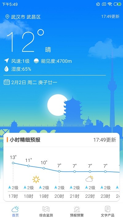 专为武汉定制的准确的实况天气,精细的天气预报。同时可查看到全武汉区域的气温、降水、湿度、风向、风速、气压等天气要素的变化情况及气象预警信息。