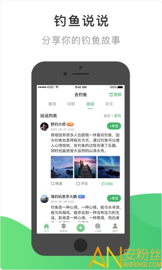 去钓鱼app是一个以钓鱼人为主题的社区交流软件,随时随地手机看贴发鱼博,帮助钓鱼人随时随地了解钓鱼圈内最新动态,在这里可以观看四海钓鱼频道,还能学到各种钓鱼技巧,关注好友动态,更多垂钓大v线上帮您答疑解问。