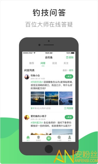 去钓鱼app是一款在线询问钓鱼方式的软件,有什么不懂的钓鱼知识,这是或会大师们为你解答问题,从零开始学习知识,还能看到一些钓鱼达人分享的生活与视频,让钓鱼成为你的兴趣爱好,喜欢的小伙伴快来下载吧!
