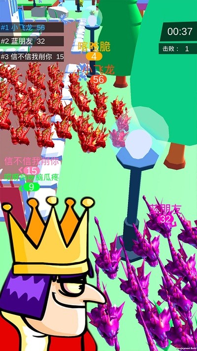 想要当国王?皇室大冒险刺杀国王游戏中你是一只皇家小飞龙,在皇室城堡里自由游走寻找同伴,壮大自己的队伍,同时警惕其他龙之队的偷袭与吞噬,不断强大自己队伍吞噬其他小队是你的目标,来体验吧!想要刺杀国王,那得先过飞龙决斗这一关! 最终看谁队伍最强大,谁就是龙族赢家!说走就走,来一场轰轰烈烈的小飞龙派对狂欢吧!赢了这场决斗,你就是这座城堡的新国王。