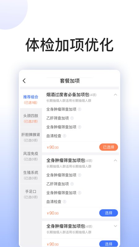 ·平台上面将不同的健康服务分为了套餐,让大家能够根据标签选择。
