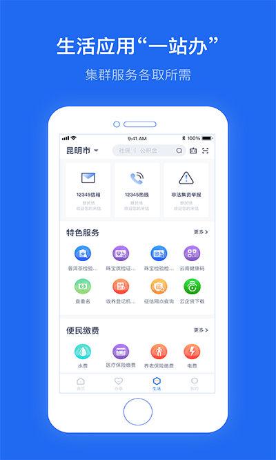 “一部手机办事通”是云南省委、省政府深化“放管服”改革,与建设银行合作开发的移动政务app,旨在为企业、群众提供便捷的政务服务。办事人可一站式办理云南全省范围内公安、人设、医保、税务等40个部门的多项业务,覆盖生活方方面面。