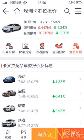 竞品车型报价及优惠查看