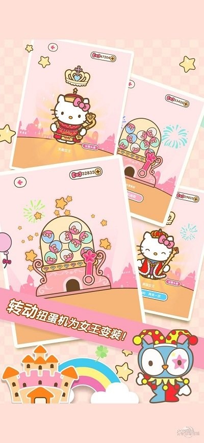hellokitty公主与女王这是一款凯蒂猫休闲游戏,温馨的画风,可爱的凯蒂猫,快来帮助女王陛下管理经营它的王国吧,还可以扭蛋解锁新服装道具哦,喜欢的朋友就赶快下载吧!
