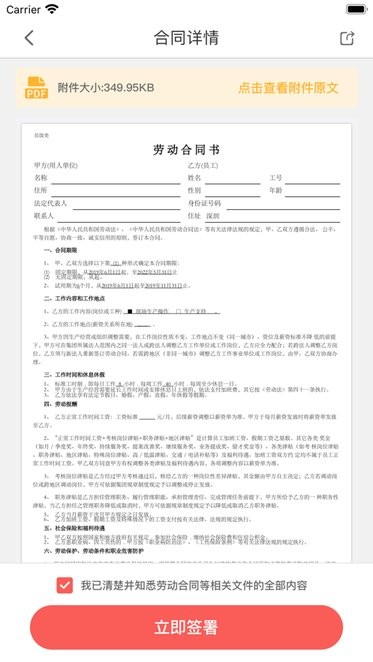 是国内第三方电子合同平台,用户可以使用这款软件轻松地查看和管理电子合同,并可以远程签署电子合同,相比于传统的纸质合同,更加便于携带,软件上有非常实用员工签约的功能,让富士康的员工们能够在这里快捷的进行签约合同的操作,非常的便捷。所有的电子合同都是能够使具有相应的法律效益的,能够作为正式的文件使用。