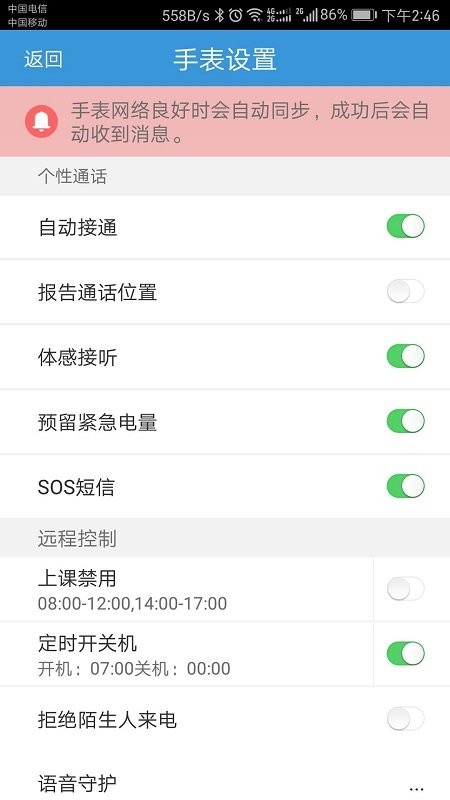 手表通过低功耗蓝牙与家长手机相连,再也不用担心共同出行时孩子随便乱跑。