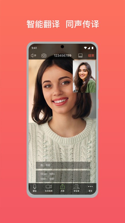 同声传译实时口语,支持中英等几十种语言。 实时语音识别,会议笔记,自动把语音转化为文字及多语言字幕;