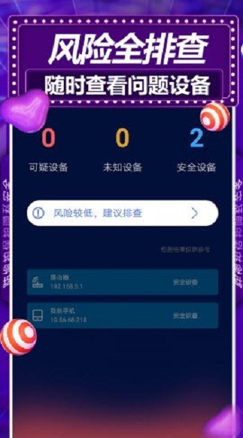 安全查摄手机版它可以智能的检测设备,帮助你排除酒店摄像头安全的问题,保护用户的出行安全,是出行入住酒店必备的神器,可以帮助你让隐藏的摄像头原形毕露,操作简单,快来给你的手机下载安装吧。