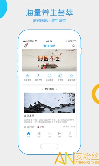 积土学吧app是一个专业的健康养生知识购物服务平台,以“全养生”理念为基础,为用户提供专业健康养生知识,通过国医养生探寻古人养生之道,国学故事学习古人智慧,快乐驿站分享传递欢笑,法律常识普及健康行业国家层面法律法规,企业宣传展示健康行业更多的优秀企业,读书会向您不断推荐好书。