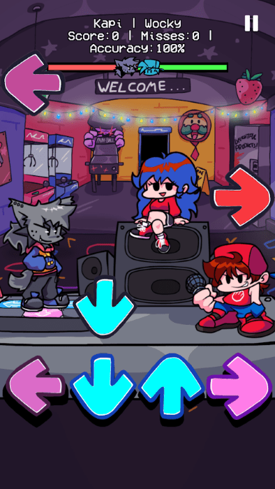是一个具有音乐节目效果的软件,如您所愿要想在非星期五得到女朋友爸爸的点头,完整的7周和超过5个模组,一个摇滚明星,即使你有说唱天赋?只需在它们完全匹配时尽力点击箭头即可获得最高分。你敢打败他,感受funkin 的节奏!你必须加入night funkin音乐大战。