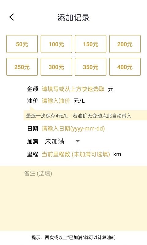 3、记录和统计加油支出,自动计算油耗;