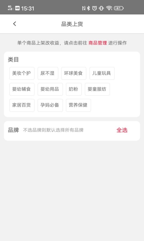 1、多样的货品选择类别列表,用于尿不湿、儿童玩具、奶粉以及营养保健等类别;