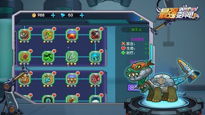 2.解锁丰富的装备,改造成各种奇葩的新动物,外观、属性等都会改变。