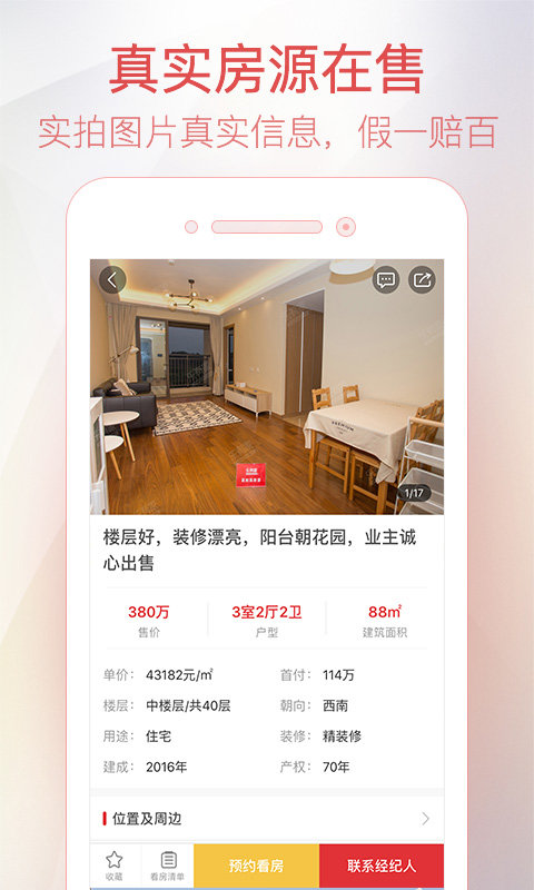 数十万套真实二手房、新房、租房房源,公开承诺假一赔百,每一套房源信息包含户型、小区实拍、学区学位、地铁信息、小区位置、税费计算、周边房价、房价走势等详细介绍。