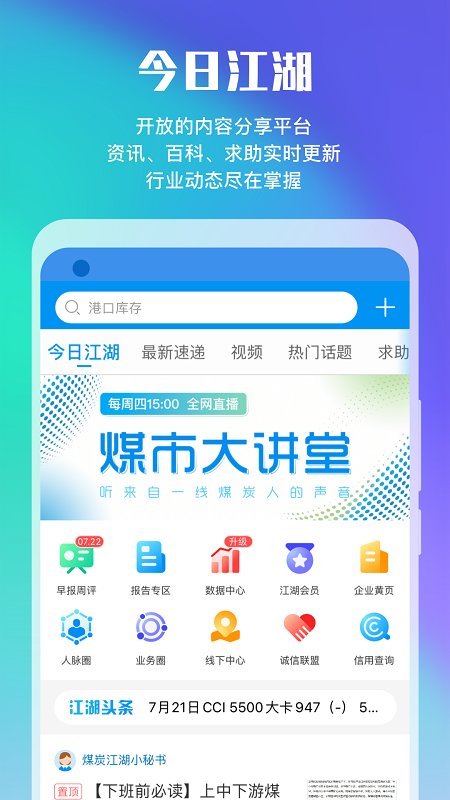 煤炭江湖是中国煤炭流通领域首个基于内容服务的分享、互助式知识型云社群。