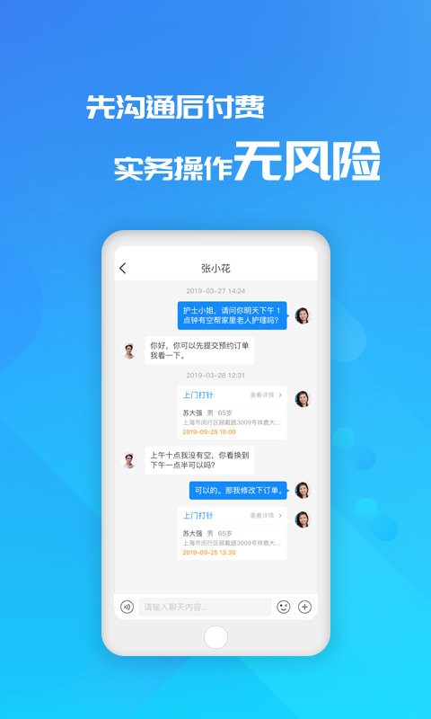 2.先递交预约服务需求,护士确认无误且接单后付费,更大程度减少操作失误引起的违约金风险