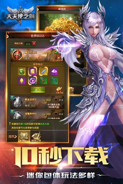 无论在2G还是4G的环境,超小的包体让玩家都可以实现极速下载,包体虽小,但神装彩羽、自由转职、BOSS等丰富玩法一样不少。
