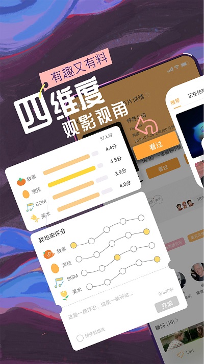 k星球app是电影爱好者们的聚集地,众多影迷们可以在这里交流自己喜爱的电影,从多维的角度为自己喜欢的电影打分,与志趣相投的人相互交流电影、分享电影和讨论电影。电影爱好者们快来下载吧!