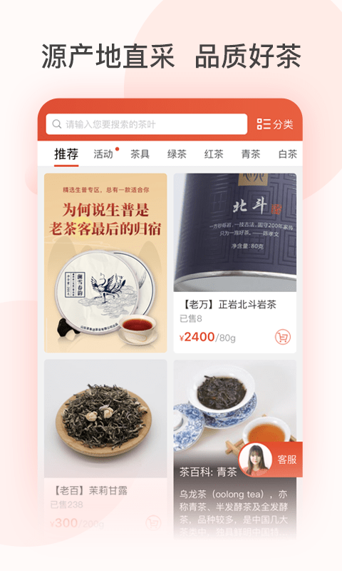 4为每位客户提供专门的客服、茶叶购买问题、饮茶技巧等茶叶相关问题,欢迎随时咨询~