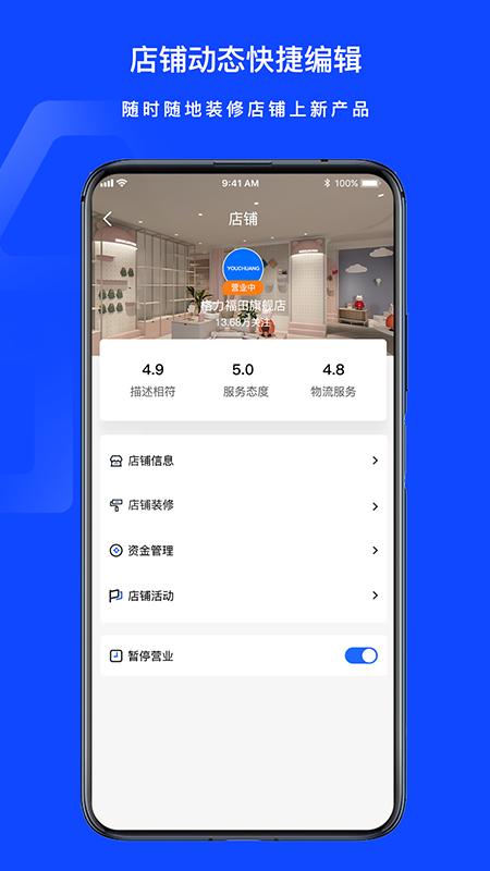 1.在app能快速的获取店铺的信息,选择店铺就能直接查看