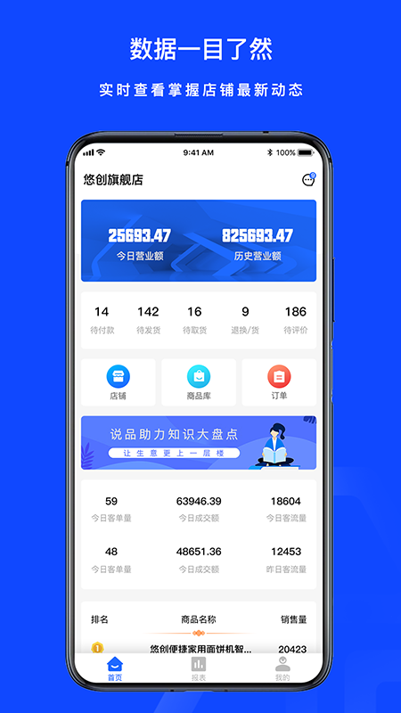 1.在这里就能快速的掌握最新的经营数据,清楚的掌握各个店铺的经营情况