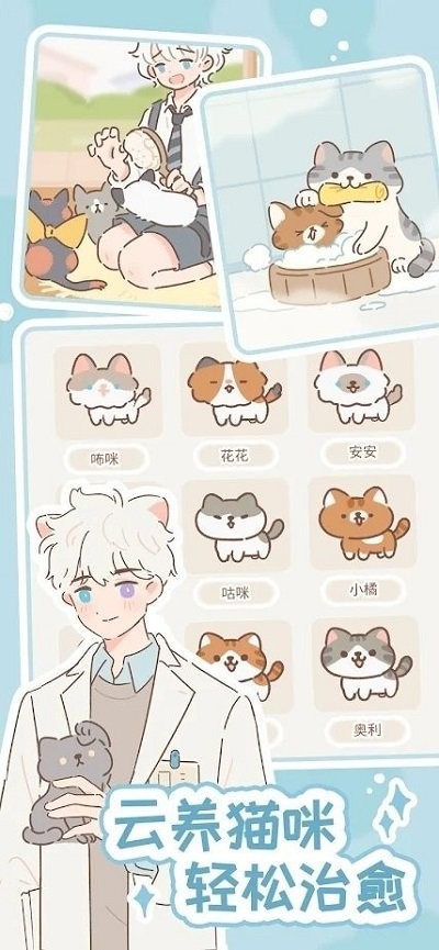遇见你的猫耳少年游戏的画风和玩法都是非常治愈的,在这里开启云养猫咪,有非常多品种的猫咪,跟随着剧情互动式的进行,跟随你的内心做出选择,各种服饰都可以自由搭配,来这里遇见你的猫耳少年吧!