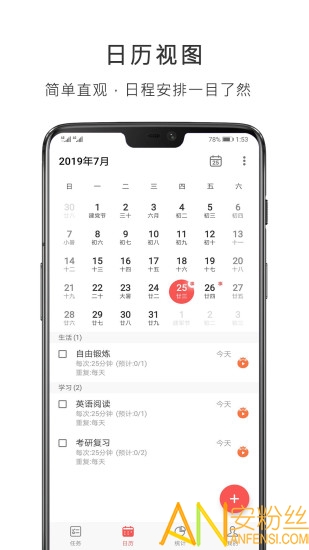 番茄清单app是一款轻便实用的日常管理手机软件,软件设计简洁、明了,没有任何广告,用户可以在上面制定和记录自己的工作或学习计划,约束自己,按时完成制定的计划,轻便实用,有需要的用户可以下载。