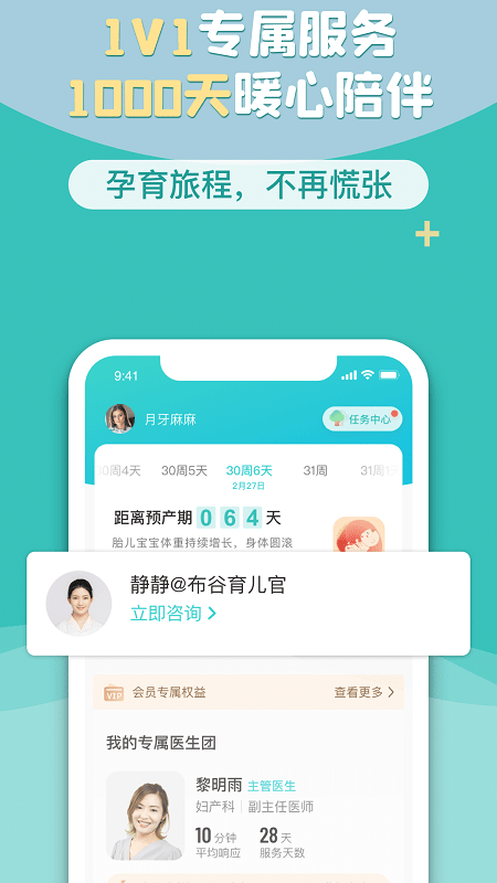 涵盖孕育1000天阶段定制化健康提醒,发育评估、孕育工具、喂养记录等等,是你和宝宝的口袋健康档案,方便专属医生服务特别的你。