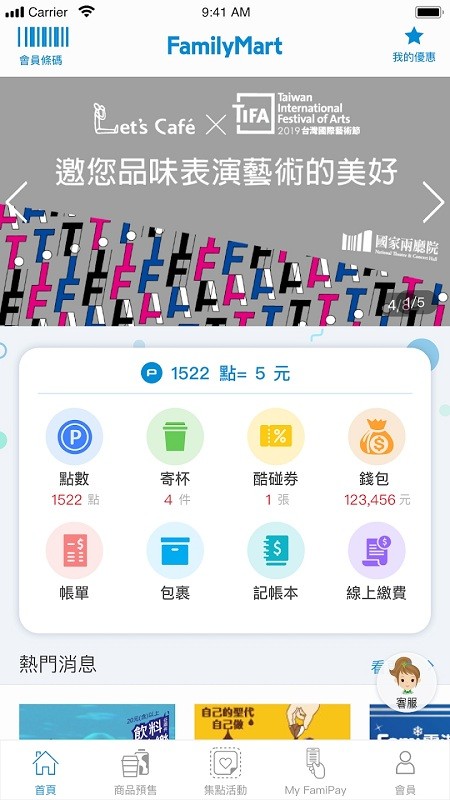 【集点活动】聪明累点好方便,加入全家会员并直接于手机出示会员条形码进行累点;轻松在全家APP查询点数与兑换集点赠品,不用再手忙脚乱找贴纸!