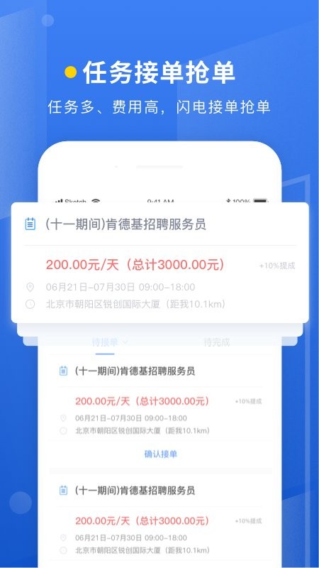 2.随时随地都可以去接单,让大家花费闲余的时间去完成各种兼职任务;