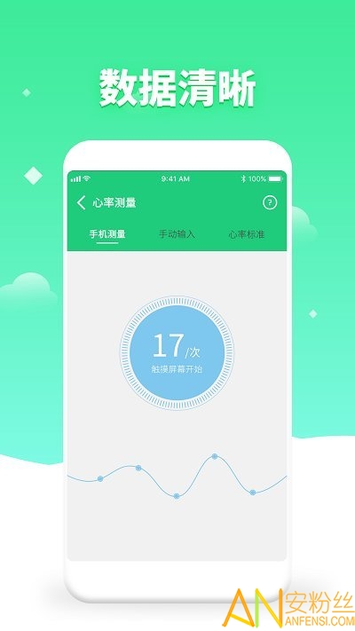 2.心率测量:有手机测量功能,也有手机输入,更有心率标准可供参考。