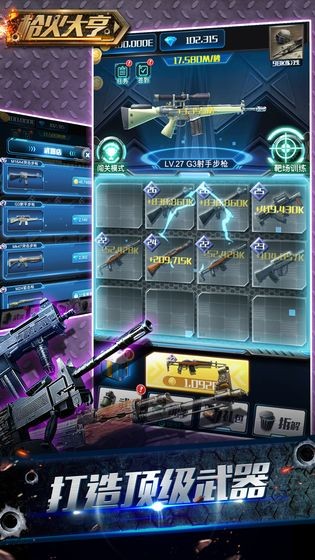 2.资源整合,装备升级! 在训练中获取的资源不要浪费,你可以在基地对自己的武器进行升级强化,最强武器才是枪之王者的最高追求