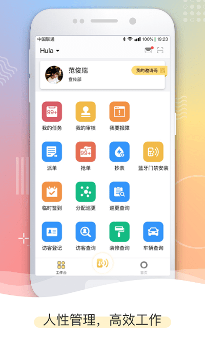 Hula平台基于服务物管,方便住户的原则,为物管提供高效、智能、安全的人性化管理服务,为住户带来便捷、健康、有趣的智慧生活体验,并联合社区商家致力打造服务、管理、商业一体化的智慧社区生态圈。