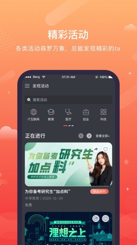 精彩活动,各类活动森罗万象,总能发现精彩的ta