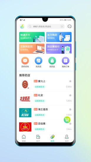 医药:电子处方一键购药:提供凭处方在上线零售药店线上预订药品、送药到家或到店自提服务;