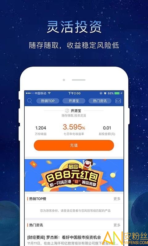1.便利:打破常规投资理财方式,下载APP做便捷的掌上理财工具,简化投资理财流程,无论活期投资、基金定投还是自选基金,手机即可轻轻松松搞定!