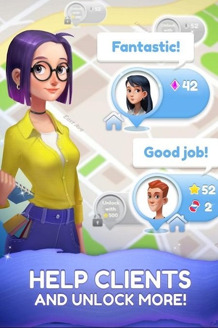 尽力满足客户的设计要求,同时坚持室内设计师的直觉。帮助您的客户创造他们的梦想家园,最终的设计完全取决于你。通过三消就能解锁丰富的家居装饰,你可以用这些装饰去为你的顾客打造他们的家,让他们的家变得更加舒适温馨。